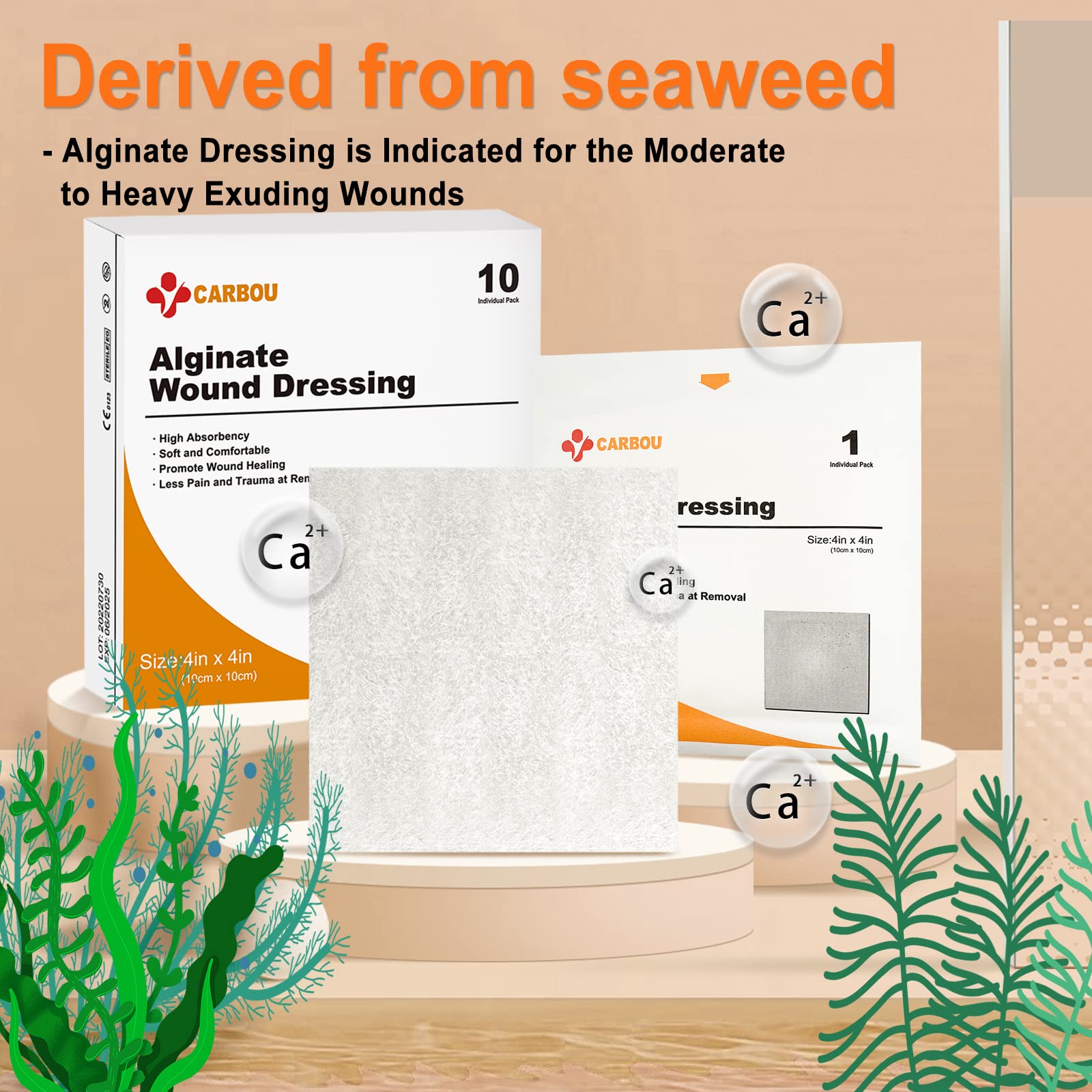 Carbou Calcium Alginate Wound Dressing, 4" x 4", 10 Pack