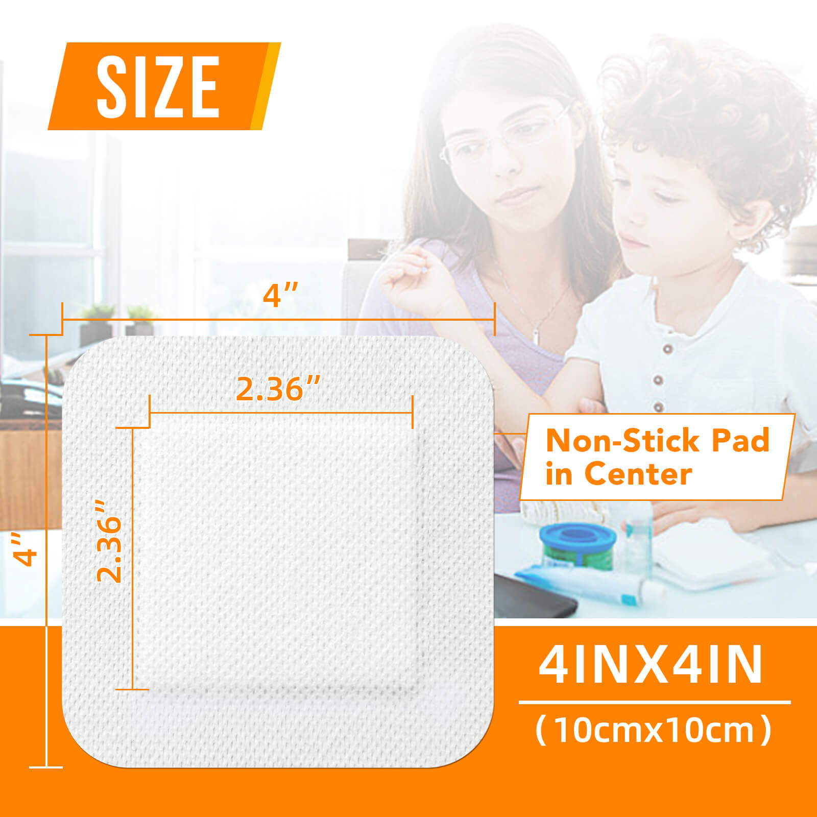 - Easy To Use-Our Gauze Adhesive Dressings are sticky around the edges but not in the middle,Compared to ordinary gauze and tape, our adhesive gauze pads don't require complex operating steps, just tear off the back film and stick it on the wound.